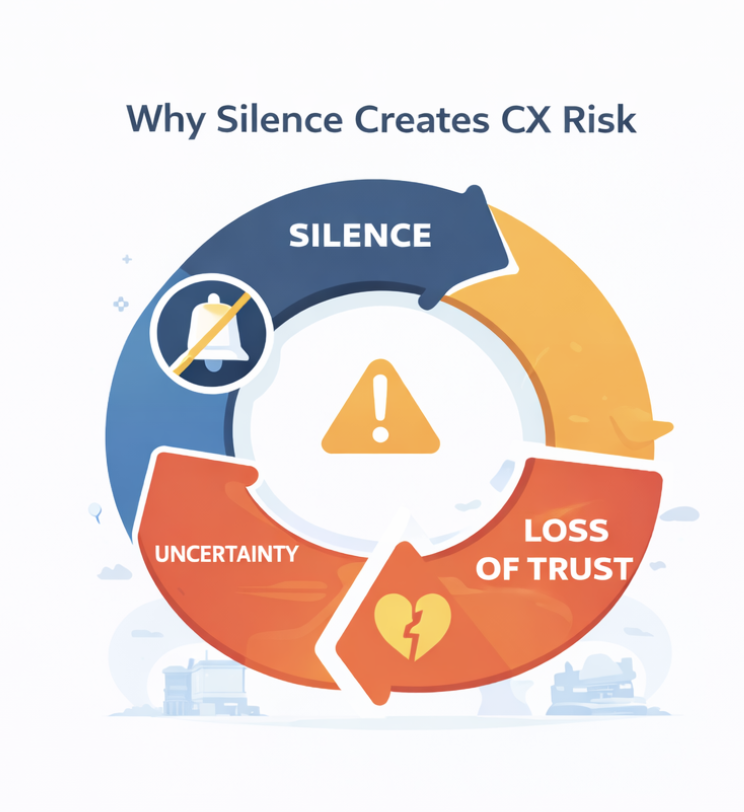 Silence creates CX risk: uncertainty grows, and trust drops.